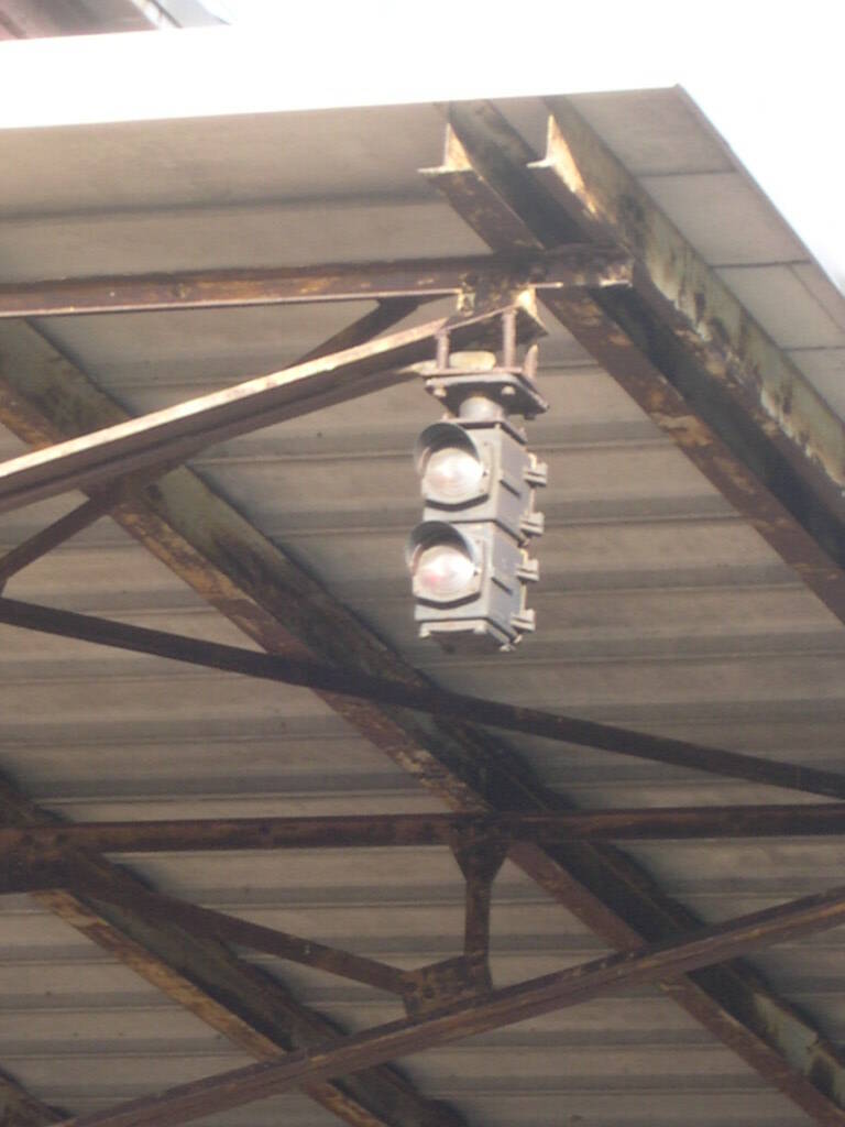 The covered loading dock tracks, this 2-aspect signal was used to inform crews when the cars were ready to pull out.
